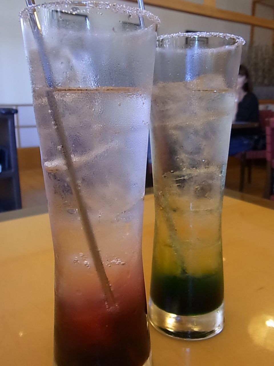 限定の誕生石のカクテル。手前がルビーで奥がペリドット。