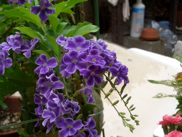 普通のデュランタは紫なんですが、これは縁が白いのです。