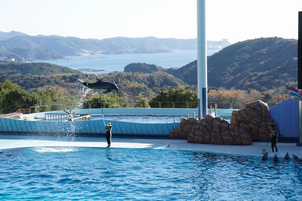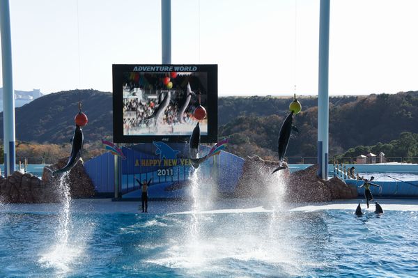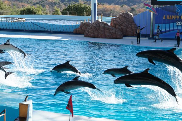 ここのショーは一度にたくさんのイルカやクジラが出演するので、なかなかの迫力です。