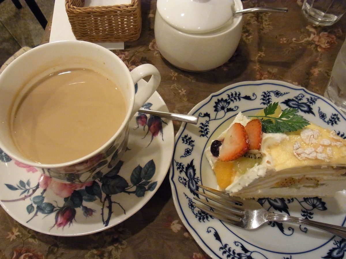 カフェオレがでかいのがお判り頂けるかと思いますが、カフェオレがでかすぎてケーキの大きさが伝わらないww